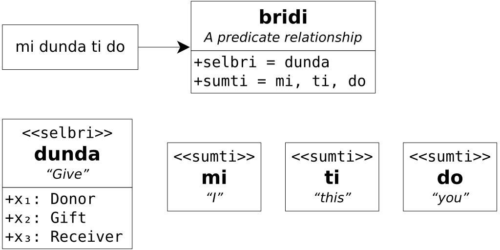 Keywords: Dunda UML.svg of the Lojban bridi mi dunda ti do Transferred from http //en wikibooks org en wikibooks; transferred to Commons by User Adrignola using http //tools wikimedia de/~magnus/commonshelper php CommonsHelper <br/> Original text own work 2009 10 19 <br/> 2009 10 20 first version ; 2009 10 19 last version Dag Odenhall Original uploader was Donri at http //en wikibooks org en wikibooks Released into the public domain by the author b English Wikibooks Donri original upload log page en wikibooks Dunda_UML svg 2009-10-20 09 05 Donri 780×390× 5631 bytes <nowiki>Less ugly more correct better export</nowiki> 2009-10-19 18 54 Donri 526×264× 71809 bytes <nowiki> of the Lojban bridi mi dunda ti do own work 2009-10-19 Dag Odenhall </nowiki> Class diagrams |