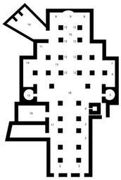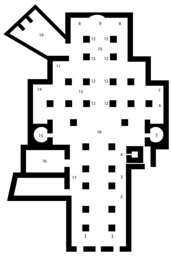 Keywords: Duomo Siena interior.svg Plan of Siena Cathedral 1 Antonio Federighi Holy Water Stoups 2 Raffaello Vanni St Francis de Sales 3 Pier Dandini Saint Catherine 4 Bell Tower 5 Gian Luigi Bernini Madonna del Voto Chapel 6 Luigi Mussini Saint Crescentius 7 Alessandro Casolani Nativity 8 Wooden Choir 9 Duccio di Buoninsegna Stained Glass Window 10 Baldassare Peruzzi Main Altar 11 Donatello Bishop Pecci's Tomb 12 Domenico Beccafumi Angel Candelabra Holders 13 Nicola Pisano Pulpit 14 Francesco Vanni Saint Ansanus 15 Donatello St John the Baptist 16 Piccolomini Library 17 Andrea Bregno Piccolomini Altar 18 Pavement 19 Sacristy Pianta della cattedrale di Siena 1 Acquasantiere di Antonio Federighi 2 S Francesco di Sales di Raffaello Vanni 3 S Caterina di Pier Dandini 4 Torre campanaria 5 Cappella della Madonna del Voto di Bernini 6 San Crescenzio di Luigi Mussini 7 Natività di Alessandro Casolani 8 Coro ligneo 9 Vetrata di Duccio da Buoninsegna 10 Altare maggiore di Baldassare Peruzzi 11 Lastra tombale di Giovanni Pecci di Donatello 12 Angelo portacero di Domenico Beccafumi 13 Pulpito di Nicola Pisano 14 Sant'Ansano di Francesco Vanni 15 San Giovanni Battista di Donatello 16 Libreria Piccolomini 17 Altare Piccolomini di Andrea Bregno 18 Pavimento 19 Sagrestia <gallery>Image Duomo Siena interior Apr 2008 5 JPG</gallery> 2008 Gothika created with Adobe Illustrator Image may be used for any purpose Cathedral Siena - Plans SVG buildings