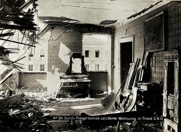Keywords: Durch Fliegerbombe zerstörte Wohnung in Triest (BildID 15595664).jpg depicted place austria de K u k Kriegspressequartier Lichtbildstelle - Wien credit line Österreichische Nationalbibliothek - Austrian National Library http //www bildarchivaustria at/Preview/15595664 jpg<br>Catalog http //www bildarchivaustria at/Pages/ImageDetail aspx p_iBildID 15595664 accession number WK1/ALB070/20269 http //creativecommons org/publicdomain/mark/1 0/ el Α΄ Παγκόσμιος Πόλεμος en World War I zh 第 次世界大战 ca Primera Guerra Mundial it Prima guerra mondiale cs První světová válka cy Y Rhyfel Byd Cyntaf hy Առաջին համաշխա հային պատե ազմ ga An Chéad Chogadh Domhanda eu Lehen Mundu Gerra et Esimene maailmasõda gl Primeira Guerra Mundial es Primera Guerra Mundial ru Пе вая ми овая война az Birinci dünya müharibəsi pt Primeira Guerra Mundial no Første verdenskrig tr I Dünya Savaşı lv Pirmais pasaules karš lt Pirmasis pasaulinis karas ro Primul Război Mondial ar الحرب العالمية الأولى is Fyrri heimsstyrjöldin pl I wojna światowa yi ערשטע ווע ט מ חמה be Пе шая сусветная вайна fr Première Guerre mondiale bg Пъ ва световна война hr Prvi svjetski rat de Erster Weltkrieg hu Első világháború hi प्रथम विश्वयुद्ध bs Prvi svjetski rat fi Ensimmäinen maailmansota da 1 verdenskrig ja 第 次世界大戦 he מ חמת העו הראשונה ka პირველი მს ფლი მი sr П ви светски ат sq Lufta e Parë Botërore ko 1차 세계 전 sv Första världskriget mk П ва светска војна sk Prvá svetová vojna gd An Cogadh Mòr uk Пе ша світова війна sl Prva svetovna vojna PD-old-80-1923 Kriegspressequartier Alben 1914 - 1918 Images uploaded by Fæ Trieste in the 1910s |