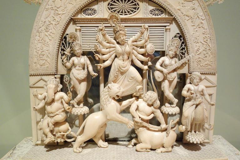 Keywords: Durga Mahishasuramardini by Toolsee Ram, view 3, India, Bengal, 1836, ivory and mirror - Berkeley Art Museum and Pacific Film Archive - DSC04163.JPG en Exhibit in the Berkeley Art Museum and Pacific Film Archive 2625 Durant Avenue 2250 Berkeley California USA This museum is part of the University of California Berkeley This artwork is in the public domain because the artist died more than 70 years ago Photography of this exhibit was permitted without restriction 2013-11-14 17 00 32 own Daderot other versions cc-zero Sculptures from India in the Berkeley Art Museum and Pacific Film Archive Uploaded with UploadWizard Durga in sculpture Indian ivory |