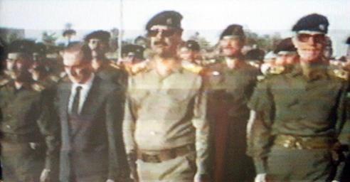 Keywords: Duri, Hussein, Aysami and Ramadhan during Aflaq funeral.jpg Iraqi and Syrian Baathist leaders during the funeral of party founder Michel Aflaq from left to right Taha Yasin Ramadan Shibli al-Aysami Saddam Hussein Izzat at-Duri Iraqi TV 1989-07-23 Iraqi News Agency PD-Iraq The source of this image was the Iraqi News Agency an organ of the defunct old regime Ba'athism Saddam Hussein Taha Yassin Ramadhan Izzat Ibrahim ad-Duri Shibli al-Aysami 1989 funerals |