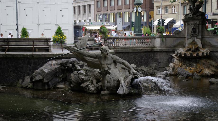 Keywords: Düsseldorf Königsallee Tritonenbrunnen 001.JPG Düsseldorfer Königsallee Wegen durch Bauarbeiten verursachter Schäden an der Wasserzufuhr sprudelt das Wasser nur mit halber Kraft own Janericloebe 2010-07 Tritonenbrunnen in Düsseldorf 2010 in Düsseldorf |
