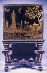| Keywords: Dutch - Cabinet with Chinese and American Motifs - Walters 6589.jpg This cabinet was made by a Dutch craftsman to imitate the expensive lacquered Chinese and Japanese chests imported by the Dutch East India Company The painter adapted some motifs such as the pagodas on the drawer fronts from Chinese porcelains but the figures are only Asian by virtue of their long embroidered coats with sashes The headwear including feather headdresses is completely fanciful Some figures are actually Native Americans adapted from engravings of 1584 reporting English explorations of Virginia On the exterior side panels are remarkable adaptations of engravings recording a French expedition of 1564 to Florida Young Floridians play competitive games while beautiful birds imaginative renderings of the bird of paradise from the East Indies swoop around them The maker surely hoped that his customers would just enjoy the exotic details between 1690 1700 Baroque wood pine with paint and gilt Upper part cm 82 5 95 accession number 65 89 22673 Barra Foundation Inc date and mode of acquisition unknown Walters Art Museum June 1974 by gift Gift of the Barra Foundation Inc 1974 place of origin Netherlands Walters Art Museum license Baroque art in the Walters Art Museum Art of the Netherlands Exoticism in European culture 17th-century furniture Exotic decorative artefacts Media contributed by the Walters Art Museum needs artist review |