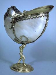 Keywords: Dutch - Nautilus Cup - Walters 57989 - Profile.jpg Shells of the pearly chambered nautilus were imported from the Indian and Pacific Oceans as natural marvels because of the lustrous beauty of the shell when polished and its amazing interior structure A luxurious drinking vessel for court feasts this cup underscores the host's magnificence and power over nature Goldsmiths designing the mounts for these shells gave free rein to their imaginations fashioning figures such as Atlas a legendary titan of Greco-Roman mythology who was said to balance the heavens on his back The artist playfully calls attention to the artful contradictions of the piece Although the shell is very light Atlas' muscles are flexed in strain ca 1630 baroque nautilus shell gilded on silver mounts cm 22 1 accession number 57 989 16751 date Caspar Bourgeois and Stephen Bourgeois Cologne purchase Sale Cologne October 19 1904 no 554 date purchase Raoul Heilbronner Paris ProvenanceEvent 1908 purchase Henry Walters Baltimore Walters Art Museum Henry Walters Acquired by Henry Walters 1908 World of Wonder The Walters Art Gallery Baltimore 1971-1972 place of origin Netherlands Walters Art Museum license Baroque art in the Walters Art Museum Art of the Netherlands Nautilus cups Media contributed by the Walters Art Museum needs category review |