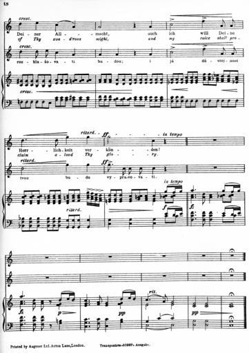Keywords: Dvorak's Biblicke Pisne i-18.jpg Dvorak's_Biblicke_Pisne_i- jpg 17 Antonín Dvořák's Biblícké Písně Biblical Songs Op 99 1884 Book 1 containing Songs 1-5 While Dvorak later orchestrated the work this the complete original piano-and-voice version While the massacre of the original music to fit the German and English is appalling it does contain the original Czech and the original music for the Czech The German and English should probably be considered only as a translation This is the first five songs out of ten the other five are printed in a second volume I have not yet tracked down I haven't been able to find Book 2 unfortunately 1895 copy in my own possession The only copyright claimed on the sheet music itself is to N Simrock which is a publishing house Antonín Dvořák 1841 1904 PD-Old Original Czech From http //music ibiblio org/pub/multimedia/pandora/vorbis/contrib/Marta_Chaloupka_Live/Czech notes accompanying the Pandora Music recording 1 Psalm 97 2-6 Oblak a mrákota jest vůkol Něho spravedlnost a soud základ trůnu Jeho Oheň předchází jej a zapaluje vůkol nepřátele Jeho Zasvěcujíť se po okršlku světa blýskání Jeho; to vidouc země děsí se Hory jako vosk rozplývají se před obličejem Hospodina panovníka vší země a slávu jeho spatřují všichni národové 2 Psalms 119 114-117 119 120 Skrýše má a pavéza má Ty jsi na slovo Tvé očekávám Odstuptež ode mne nešlechetníci abych ostříhal přikázaní Boha svého Posiluj mne bych zachován byl a patřil k ustanovením Tvým ustavičně Děsí se strachem před Tebou tělo mé; nebo soudů Tvých bojím se náramně 3 Psams 55 1 2 4/5 6 7 8 Slyš ó Bože Slyš modlitbu mou a neskrývej se před prosbou mou Pozoruj a vyslyš mne neboť naříkám v úpění svém a kormoutím se Srdce mé tesklí ve mně a strachové smrti přišli na mne a hrůza přikvačila mne I řekl jsem Ó bych měl křídla jako holubice zaletěl bych a poodpočinul Aj daleko bych se vzdálil a přebýval bych na poušti Pospíšil bych ujíti větru prudkému a vichřici 4 Psalms 23 1-4 Hospodin jest můj pastýř nebudu míti nedostatku Na pastvách zelených pase mne k vodám tichým mne přivodí Duši mou občerstvuje vodí mne po stezkách spravedlnosti pro jméno své Byť mi se dostalo jíti přes údolí stínu smrti nebuduť se báti zlého nebo Ty se mnou jsi; a prut Tvůj a hůl Tvá toť mne potěšuje 5 Psalms 144 9 145 1-3 5 6 Bože Bože píseň novou zpívati budu Tobě na loutně a žalmy tobě prozpěvovati Na každý den dobrořečiti budu Tobě a chváliti jméno Tvé na věky věků Hospodin jistě veliký jest a vší chvály hodný a velikost jeho nemůž vystižena býti O slávě a kráse a velebnosti Tvé i o věcech Tvých předivných mluviti budu A moc přehrozných skutků Tvých vsichni rozhlašovati budou; i já důstojnost Tvou budu vypravovati 6 Psalms 61 1 3 4 63 1 4/5 Slyš ó Bože volání mé pozoruj modlitby mé Nebo jsi býval útočiště mé a pevná věže před tváří nepřítele Buduť bydliti v stánku tvém na věky schráním se v skrýši křídel tvých Bože Bůh silný můj ty jsi tebeť hned v jitře hledám Tebe žízní duše má po tobě touží tělo mé v zemi žíznivé a vyprahlé v níž není vody A tak abych tobě dobrořečil a s radostným rtů prozpěvováním chválila by tě ústa má 7 Psalms 137 1-5 Při řekách Babylonských tam jsme sedávali a plakávali rozpomínajíce se na Sion Na vrbí v té zemi zavěšovali jsme citary své když se tam dotazovali nás ti kteříž nás zajali na slova písničky říkajíce Zpívejte nám některou píseň Sionskou Odpovídali jsme Kterakž bychom mohli zpívati píseň Hospodinovu v zemi cizozemců Jestliže se zapomenu na tebe ó Jeruzaléme ó zapomeniž i pravice má umění svého 8 Psalms 25 16-18 20 Popatřiž na mne a smiluj se nade mnou neboť jsem opuštěný a strápený Soužení srdce mého rozmnožují se z úzkostí mých vyveď mne z úzkostí mých vyveď mne Smiluj se nade mnou Viz trápení mé a bídu mou a odpusť všecky hříchy mé Ostříhej duše mé a vytrhni mne ať nejsem zahanben neboť v tebe doufám neboť v tebe doufám 9 Psalms 121 1-4 Pozdvihuji očí svých k horám odkud by mi přišla pomoc Pomoc má jest od Hospodina kterýž učinil nebe i zemi Nedopustíť aby se pohnouti měla noha tvá nebo nedřímeť strážný tvůj Aj nedřímeť ovšem nespí ten kterýž ostříhá Izraele 10 Psalms 98 1 4/5 7 8 96 12/11 Zpívejte Hospodinu píseň novou neboť jest divné věci učinil Zvuk vydejte prozpěvujte a žalmy zpívejte Zvuč moře i to což v něm jest okršlek světa i ti což na něm bydlí Řeky rukama plésejte spolu s nimi i hory prozpěvujte Plésej pole a vše což na něm plésej země zvuč i moře i což v něm jest Biblické písně Psalm 144 |