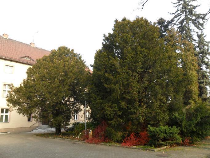 Keywords: Dwa cisy pospolite przy ul. Sudneckiej w Raciborzu.JPG pl Dwa cisy pospolite przed klasztorem franciszkanów przy ul Sudeckiej w Raciborzu own Olos88 Natural monuments in Racibórz