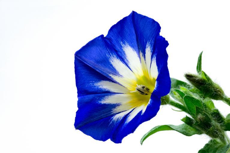 Keywords: nikon d750 public domain publicdomain dwarf morning glory convolvulus tricolor blue white yellow flower white background Convolvulus tricolor Convolvulus tricolor