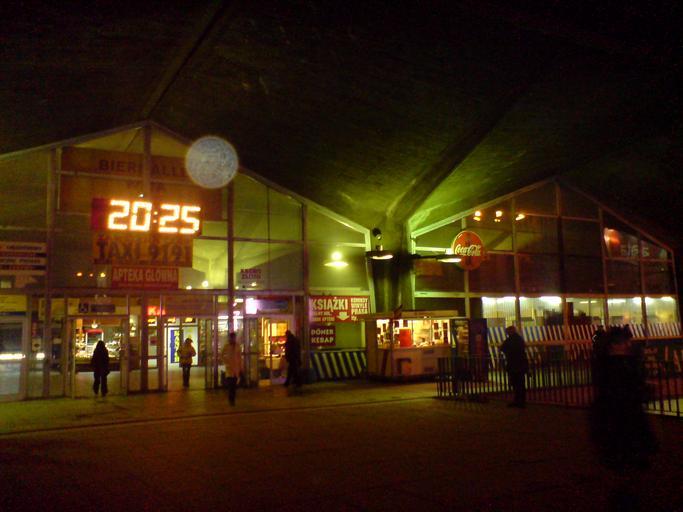 Keywords: Dworzec katowice1.JPG Železniční stanice Katowice - vchod do haly brutalistického nádraží Polsko pl Wejście na dworzec kolejowy w Katowicach own Olos88 Katowice train station 1972-2011