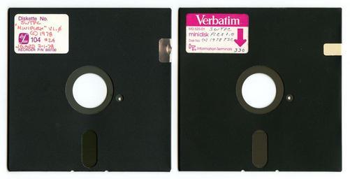 Keywords: Dysan Verbatim 5.25 disks 1978.jpg en The diskettes for the Shugart SA-400 Minifloppy were jointly developed by Dysan Corporation and Information Terminals Corporation Storage capacity of the minifloppy diskettes were 109 4 kilobytes unformatted and 89 6 kilobytes formatted When the diskettes were introduced in August 1976 they only supported 35 data tracks this was increased to 40 data tracks in 1977 The software on these disks was developed by Technical System Consultants of West Lafayette Indiana for Southwest Technical Products Corporation of San Antonio Texas It was a disk operating system for the SWTPC 6800 Computer System that used a Motorola M6800 microprocessor The claim of copyright is for the contents of the disk not the hand-written labels These provide a date the disks were first used Disks scanned with an Epson Perfection V500 Photo scanner Own Swtpc6800 en User Swtpc6800 Michael Holley 2010-01-17 <gallery> File Shugart SA 400 Minifloppy Bottom jpg File Shugart SA 400 Minifloppy Drive jpg File Shugart SA 400 Minifloppy Front jpg File Shugart SA 400 Minifloppy Rear jpg File Shugart SA 400 Minifloppy Top jpg File Shugart SA 400 Minifloppy With Disk jpg File Shugart Minifloppy Ad Sept 1977 jpg File Shugart SA 104 Minidiskette jpg File Verbatim 5 25 minidisk tracks 1978 jpg </gallery> Shugart Minifloppy Verbatim Corporation Photographs by User Swtpc6800 Dysan Corp |