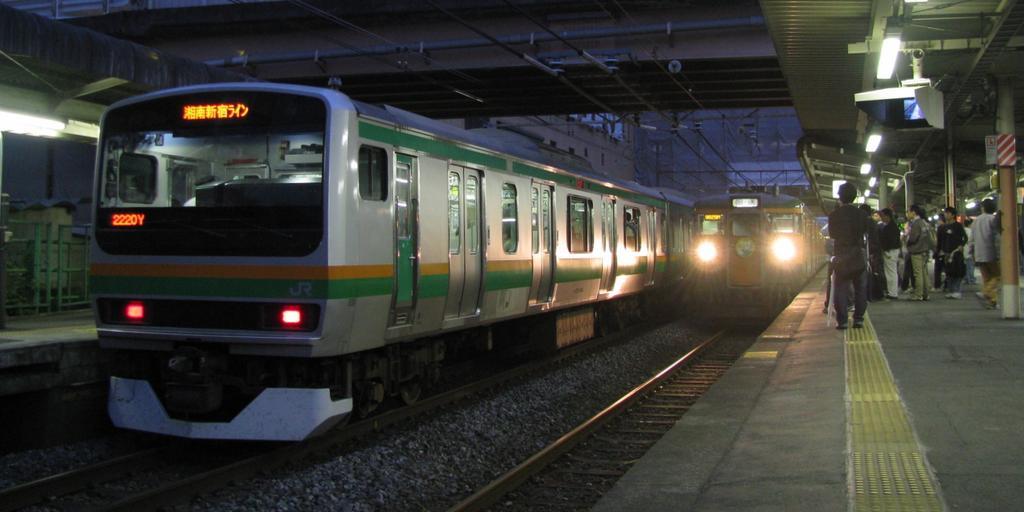MAKE A MEME View Large Image E231 and 115 Ageo 20091101.jpg JR East E231 series and 115 series electric multiple units at Ageo Station 上尾駅に並ぶ新旧の高崎線電車  左(3番線) E231系1000番台(クハE231形8000番台)湘南新宿ライン南...