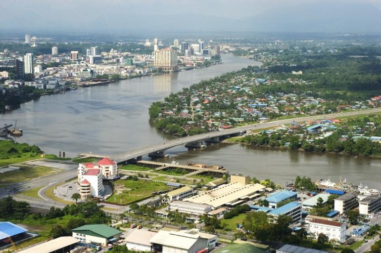 Keywords: E24 Pending Bridge.jpg en The Tun Salahuddin Bridge The only tolled expressway in East Malaysia In the background is Kuching City Centre Taken from a plane about to land at Kuching International Airport Own Rapidkuching 1/3/2007 Kuching Bridges in Malaysia Toll bridges Aerial photographs of Malaysia |