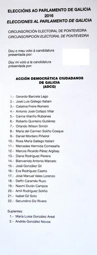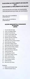Keywords: E. ao Parlamento de Galicia 2016. C. E. de Pontevedra. ADCG.jpg gl Eleccións ao Parlamento de Galicia 2016 Circunscrición Electoral de Pontevedra 2016-09-25 13 54 55 own HombreDHojalata other versions cc-zero PD-SpanishGov es se borro el logotipo del partido político por copyright borrouse o logotipo do partido político por copyright Ballot papers for the 2016 Galician parliamentary election for the province of Pontevedra All medias supported by Wikimedia España in 2016 Ballot papers for Acción Democrática Ciudadanos de Galicia |