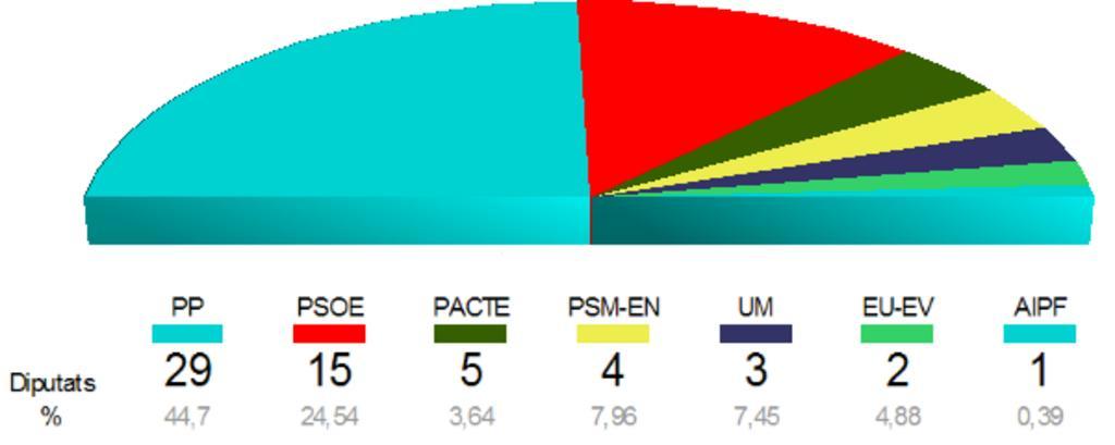 Keywords: E ib2003.png Gràfic de l'arc parlamentari sorgit de les Eleccions al Parlament de les Illes Balears 2003 2006-11-11 own assumed Josep Arias i López Elections in Spain Graphics from the Balearic Islands