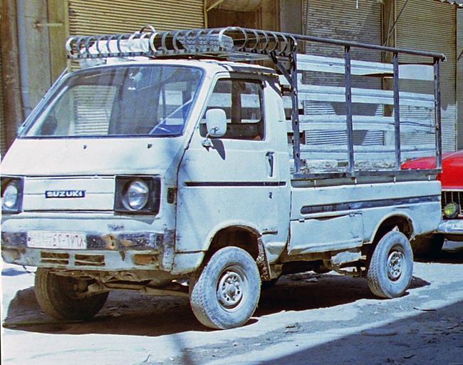 Keywords: Early Suzuki Carry ST20 truck in Aleppo (Spielvogel).jpg 1995 Aleppo Syria Trash in Sleepy Street + Chevrolet + Suzuki Spielvogel Archiv JPG by Spielvogel en For a small gallery of some more of Spielvogel's uploaded pictures see here All images can be used free of charge 这里 ici hier Alle Bilder können kostenfrei verwendet werden Created by Spielvogel;<br>cropped and lightly adjusted by Mr choppers 1995 original photo <br>2013-08-27 extracted version 1995 Aleppo Syria Trash in Sleepy Street + Chevrolet + Suzuki Spielvogel Archiv JPG cc-by-2 5 1995 Aleppo Syria Trash in Sleepy Street + Chevrolet + Suzuki Spielvogel Archiv JPG Spielvogel GFDL opt-out Cc-zero Automobiles in Syria Transport in Aleppo Suzuki Carry ST20 |