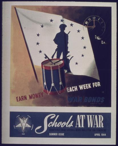 Keywords: "Earn Money Each Week for War Bonds - Schools at War" - NARA - 514190.jpg Scope and content General notes 514190 Local identifier 44-PA-709 Office for Emergency Management Office of War Information Domestic Operations Branch Bureau of Special Services 03/09/1943 - 09/15/1945 Still Picture Records Section Special Media Archives Services Division NWCS-S National Archives at College Park 8601 Adelphi Road College Park MD 20740-6001 1941 - 1945 Record group Record Group 44 Records of the Office of Government Reports 1932 - 1947 Record group ARC 373 World War II Posters compiled 1942 - 1945 Series ARC 513498 File unit File unit ARC Variant control numbers NAIL Control Number NWDNS-44-PA-709 Other versions <gallery> File Earn_Money_Each_Week_for_War_Bonds_-_Schools_at_War _-_NARA_-_514190 tif tif File Earn_Money_Each_Week_for_War_Bonds_-_Schools_at_War _-_NARA_-_514190 jpg jpg </gallery> NARA-cooperation PD-USGov World War II war bond posters from the United States Schools in the United States Drums in art |