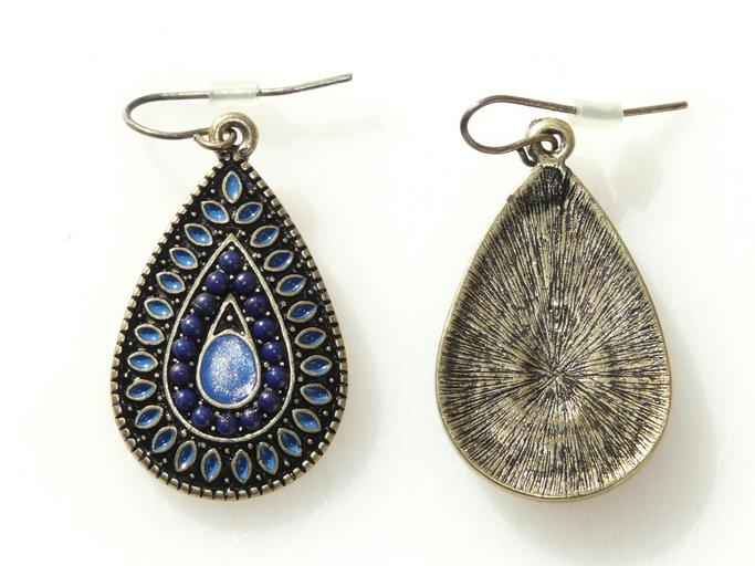 Keywords: earrings jewellery stone blue ornament beads front side back