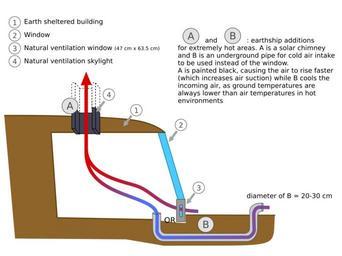 Keywords: Earthship-ventilation-cooling-tube-schematic.svg en A picture of the workings of natural ventilation in a earthship earthship design for arid subtropical climate; uses windows tilted at 60° Schematic was based on a picture found in the book Earthship Vol 2 Systems and Components by Michael Reynolds EarthshipVentilation_new png 2013-04-27 23 30 UTC derivative work Anasofiapaixao EarthshipVentilation_new png Tirkfl EarthshipVentilation_new png Vectored slight rewording of the image text different look for the airflux arrow Anasofiapaixao EarthshipVentilation_new png Anasofiapaixao Anasofiapaixao exp h Sustainable architecture Earthship Natural indoor ventilation |