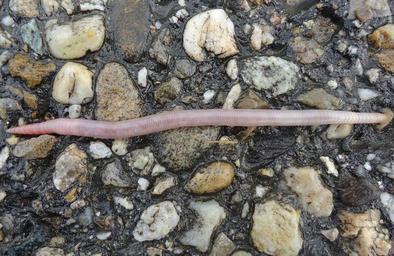 Keywords: earthworm wet moist patch water line tortuous asphalt