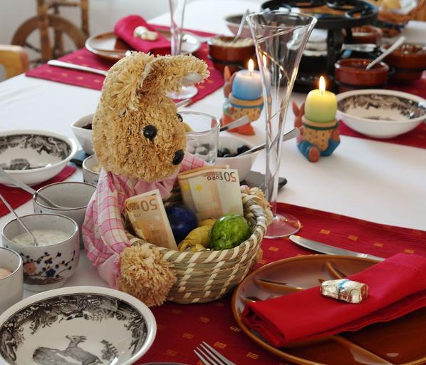Keywords: easter hare gift table board eat gedeckter table festival celebration cutlery cover glasses plate table cover family fast family decoration serving suggestion