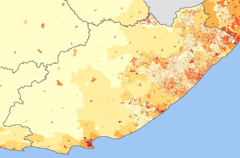 Keywords: Eastern Cape 2001 population density map.svg ffffcc <1 inhabitant/km² ffeda0 1 “3 inhabitants/km² fed976 3 “10 inhabitants/km² feb24c 10 “30 inhabitants/km² fd8d3c 30 “100 inhabitants/km² fc4e2a 100 “300 inhabitants/km² e31a1c 300 “1000 inhabitants/km² bc0026 1000 “3000 inhabitants/km² 800026 >3000 inhabitants/km² Projection is Albers Equal-Area Conic with standard parallels at 25 5° S and 31 5° S and origin at 28 5° S 25 5° E Statistics South Africa's Census 2001 is the source of the basic population data The map results from my own processing of the data Htonl 2010-02-10 Superseded demographic maps of South Africa Maps of the Eastern Cape The following license applies to the population data on which the map is based http //www statssa gov za/copyrightdisclaimer asp the user acknowledges Stats SA as the source of the basic data wherever they process apply utilise publish or distribute the data and also that they specify that the relevant application and analysis where applicable result from their own processing of the data The following tag applies to the map itself |