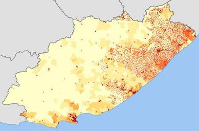 Keywords: Eastern Cape 2011 population density map.svg ffffcc <1 inhabitant/km² ffeda0 1 “3 inhabitants/km² fed976 3 “10 inhabitants/km² feb24c 10 “30 inhabitants/km² fd8d3c 30 “100 inhabitants/km² fc4e2a 100 “300 inhabitants/km² e31a1c 300 “1000 inhabitants/km² bc0026 1000 “3000 inhabitants/km² 800026 >3000 inhabitants/km² Projection is Albers Equal-Area Conic with standard parallels at 25 5° S and 31 5° S and origin at 28 5° S 25 5° E Statistics South Africa's Census 2011 is the source of the basic population data The map results from my own processing of the data Htonl 2013-10-22 http //beta2 statssa gov za/ page_id 425 The following license applies to the population data on which the map is based the user acknowledges Stats SA as the source of the basic data wherever they process apply utilise publish or distribute the data and also that they specify that the relevant application and analysis where applicable result from their own processing of the data The following tag applies to the map itself Demographic maps of South Africa Maps of the Eastern Cape |