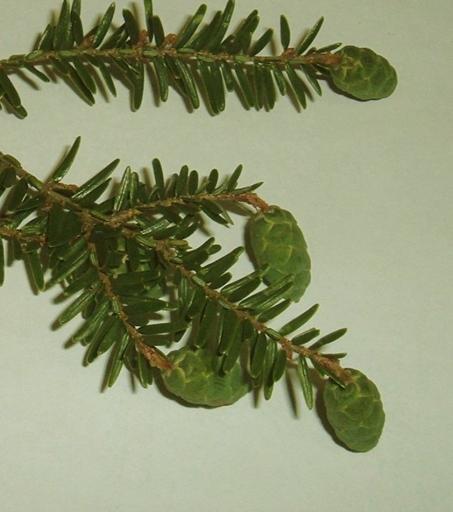 Keywords: Eastern Hemlock.jpg Eastern Hemlock Tsuga canadensis foliage with young cones attached Own 2006-09-21 Kevinlyfellow Tsuga canadensis cultivated