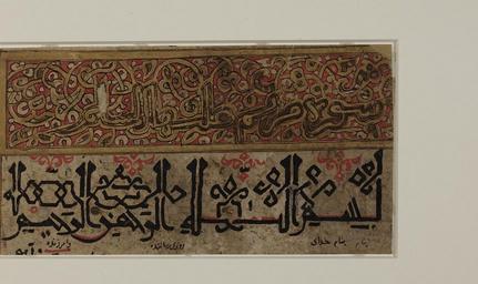 | Keywords: Eastern Kufi and Persian Naskh.jpg en This fragment includes on its recto the last verse 110 of the 18th chapter of the Qur'an entitled Surat al-Kahf The Cave The heading of the next chapter 19 entitled Surat Maryam Mary appears on the fragment's verso see 1-90-154 150 V The Qur'anic text itself is executed on rag paper in old Persian naskh and provided with interlinear Persian translations Eastern Kufi and Persian naskh scripts are typical calligraphies practiced in Persian lands between the 11th and the 13th centuries It is rather rare to find eastern Kufi interlaced as the script tends to incline at an angle Nevertheless its high verticals or stems leave ample room for the elaboration of decorative motifs in the textual interstices Decorative elements include knots vine or leaf motifs plaits and interlaced stems which counterbalance the low curves of the writing with a filled space in the writing's upper zone This decorative technique not only presents calligraphy in an aesthetic manner but also ensures the clarity of the letters LOC-calligraphy ascs 235 Unknown Calligrapher 11th-13th centuries PD-Art Kufic style Qur'an manuscripts 11th century Naskh script Library of Congress Arabic Persian and Ottoman calligraphy collection |