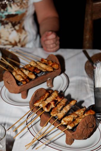 Keywords: eat snack delicious kitchen restaurant plate holiday bali enjoy meat skewers sate grill