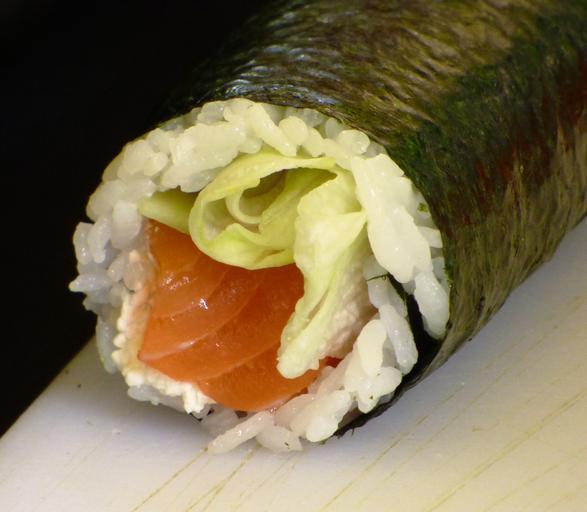 Keywords: eating sushi food health rice sesame algae salmon fish
