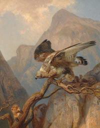 | Keywords: Ebersberg Steinmarder vor Adlernest.jpg Carl Martin Ebersberg 1818 Biberach; 1880 Graz title Steinmarder vor Adlernest Beech marten at an eagle's nest Oil on canvas 33 x 26 cm http //www zeller de/de/katalog/auktion-90-sep-06/auktionsartikel/carl-martin-ebersberg-1818-biberach-1880-graz-schueler-von-johann-baptist-pflug-1836-38-von/ Auktionshaus Zeller Auktion 90 Sep 2006 Los 1115 PD-old-100 Carl Martin Ebersberg eagles in art martes foina Images from Auktionshaus Zeller | ||||