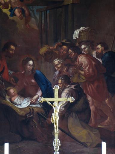 Keywords: Ebersmunster Abbatiale049.JPG fr Alsace Bas-Rhin Ebersmunster Église abbatiale Saint-Maurice Maître-autel 1727-1820 Tableau Adoration des bergers 1820 own 2015 Ralph Hammann cc-by-sa-4 0 Artwork / Œuvre d'art / Kunstwerk oil canvas cm 345 235 Abbatiale Saint-Maurice Ebersmunster Maître-autel IM67009301 object history Les tableaux du maître-autel sont interchangeables et selon la tradition ils auraient été au nombre de 12 ; il en reste trois l'Adoration des bergers du 18e siècle d'après le tableau de Rubens au musée de Rouen le martyre et l'apothéose de saint Maurice du début du 19e siècle et la remise du scapulaire à saint Benoît et au bienheureux Simon Stock qui serait une oeuvre de F Haberer en 1820 other versions Ralph Hammann PD-old accession number Maître-autel de Saint-Maurice d'Ebersmunster Objets monuments historiques in Bas-Rhin church paintings Baroque church paintings in Alsace 19th-century church paintings in Alsace Photographs of Ebersmunster by Ralph Hammann Taken with Canon PowerShot SX20 IS 19th-century paintings of adoration by the shepherds Adoration by the shepherds in paintings Details of 19th-century paintings 1820 oil on canvas paintings in France |