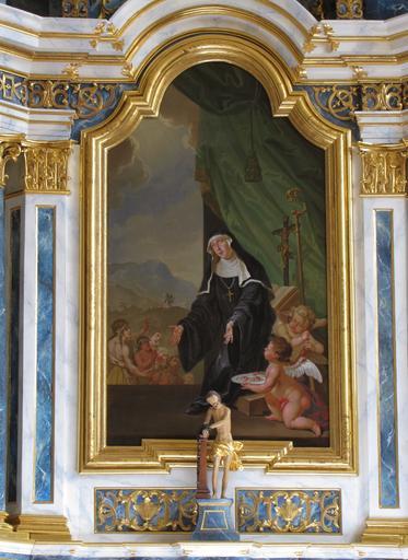 | Keywords: Ebersmunster Abbatiale167.JPG Alsace Bas-Rhin Ebersmunster Église abbatiale Saint-Maurice Autel secondaire de Sainte-Odile XVIIIe own 2015 Ralph Hammann cc-by-sa-4 0 Artwork / Œuvre d'art / Kunstwerk oil canvas cm 158 90 Abbatiale Saint-Maurice Ebersmunster Autel secondaire de Sainte-Odile IM67007589 object history Ces tableaux d'autels signés par Franz Joseph Stoeber celui de sainte Scholastique date de 1781 celui de sainte Odile de 1807 remplacent les œuvres d'origine ornant les autels retables secondaires de 1730 ; les tableaux des couronnements ne sont pas signés mais datent également du 18e siècle other versions Ralph Hammann PD-old-100 accession number Photographs of Ebersmunster by Ralph Hammann Taken with Canon PowerShot SX20 IS Autel de Sainte-Odile Ebersmunster Objets monuments historiques in Bas-Rhin church paintings Baroque church paintings in Alsace Paintings of Christian saints in France 19th-century church paintings in Alsace Saint Odile 1807 oil on canvas paintings in France 1807 works in Alsace |