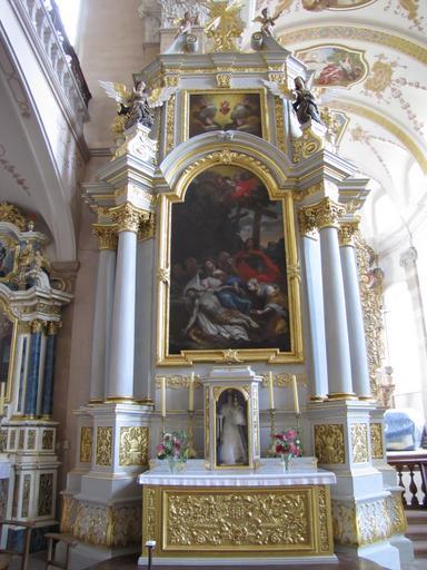 Keywords: Ebersmunster Abbatiale22.JPG fr Alsace Bas-Rhin Ebersmunster Eglise abbatiale Saint-Maurice Autel secondaire de la Croix 1692-1730 Tableau Déploration 1720 own Rh-67 2010 cc-by-sa-3 0 Artwork / Œuvre d'art / Kunstwerk oil canvas cm 330 175 Abbatiale Saint-Maurice Ebersmunster IM67007588 object history Les tableaux d'autel inférieurs sont signés par le peintre Andreas von Wihl de Sélestat ; le tableau de la Déploration est daté 1720 celui de saint Benoît 1730 ; les tableaux des couronnements ne sont pas datés mais appartiennent certainement à la même campagne other versions Ralph Hammann PD-old-100 accession number Photographs of Ebersmunster by Ralph Hammann Taken with Canon PowerShot SX20 IS Autel de la Croix Ebersmunster Objets monuments historiques in Bas-Rhin church paintings Baroque church paintings in Alsace 18th-century church paintings in Alsace Paintings of Lamentation of Christ 18th-century paintings of the descent from the Cross 1720 paintings in France 1720 works in Alsace |