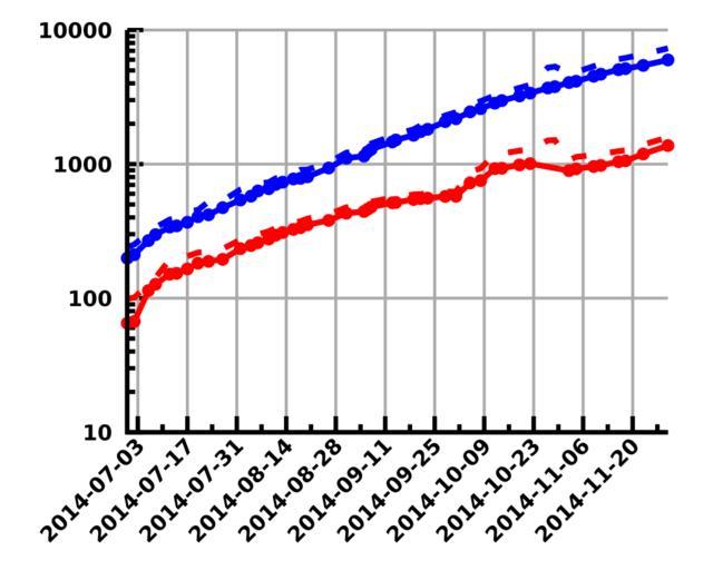Keywords: Ebola sierraleone2014 log.svg de Logscale-Version von File Ebola sierraleone2014 svg 2014-10-18 11 50 20 own StefanPohl other versions cc-zero v fl gnuplot 5 1 CVS reset set terminal svg size 600 480 fname 'Verdana sans-serif bold' fsize 18 lw 5 unset key set grid lt 1 lc rgb 0xAAAAAA lw 5 set border 3 lw 75 set tics nomirror set xdata time set timefmt ' Y- m- d' set format x ' Y- m- d' set autoscale fix set xtics 60 60 24 14 nomirror rotate by 45 right set for i 1 4 style line i ps 75 pt 7 set style line 1 lc rgb 0x0000FF dt 2 set style line 2 lc rgb 0x0000FF set style line 3 lc rgb 0xFF0000 dt 2 set style line 4 lc rgb 0xFF0000 NA ' ' do fordata in 'ebola_guinea2014 ebola_liberia2014 ebola_sierraleone2014' set output data ' svg' set yrange 0 plot data ' txt' \ u 1 strcol 2 eq NA strcol 3 eq NA strcol 4 eq NA 8 2+ 3+ 4 ls 1 w lines \ u 1 2 ls 2 w linespoints \ u 1 strcol 5 eq NA strcol 6 eq NA strcol 7 eq NA 9 5+ 6+ 7 ls 3 w lines \ u 1 5 ls 4 w linespoints set output data '_log svg' unset yrange set logscale y replot unset logscale y Uploaded with UploadWizard 2014 Ebola outbreak statistics |