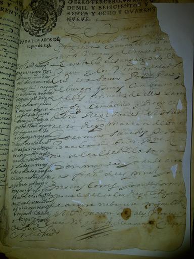 Keywords: Ec-AHG-mnc-29.jpg es García Alcívar Jodison Javier 2013 Spondylus Revista cultural Num 35/Escritura de Contrato perteneciente al Teniente General de Puerto Viejo Don José Belázquez de Navas sobre la dirección del negocio de tabaco Ediciones La Tierra e Ilustre Municipalidad de Portoviejo Ecuador Página s 3 a 12 Publicación consultada en los Fondos Documentales del Archivo Histórico del Guayas AHG ; Guayaquil - Ecuador Transcripción de folio ACUERDO DEL CABILDO DE PUERTO VIEJO SUS VECINOS PRINCIPALES Y EL TENIENTE GENERAL DON JOSÉ BELÁZQUEZ DE NAVAS VECINO DE GUAYAQUIL PARA LLEVAR ORGANIZADAS POR LA JURISDICCIÓN DE LA CIUDAD TODAS LAS COSECHAS DE TABACO TENIDAS EN SUS CHACRAS Y QUE HUBIEREN DE SER EMPETACADAS Y LIADAS EN RECUAS DE ASNOS HASTA EL PUERTO DE MANTA POR MUTUA DISPOSICIÓN DE LAS PARTES COSTANDO DE SU PAGA A CUATRO REALES Y MEDIO DE PLATA POR CADA MANOJO - Escribanía de Andrés Márquez de Gaceta 1 En la Ciudad 2 de San Gregorio de Puerto Viejo en beinte y nueve días del mes de Noviembre de mil y seiscientos y cinquenta y cinco años ante mí el Escribano Público y Testigos de yuso escritos pareció el Sargento Mayor Joseph Belázquez de Navas 3 Justicia Mayor de esta dicha Ciudad a quien doy fe que conozco y otorgaba y otorgó que dava e dio esta Escriptura de Contrato; que quien con los Vecinos de esta dicha Ciudad la da por rrota y chancelada para que no vayan porque de ínterin haya se agotaren en tiempo de yuso por lo que toca re de dicho otorgante dexando el derecho a salvo a los demás otorgantes y a su modo otorgó y firmó de su letra en la dicha Ciudad Sepan cuantos vieren esta Escriptura de bentaja sien do obligatorio como Nos; el Sargento Mayor Joseph Belázquez de Navas Residente en esta Ciudad de San Gregorio de Puerto Viejo del Perú y los Vecinos de la dicha Ciudad es a saber; Bartholomé Pérez de Burgos y Tomás Çambrano Alcaldes Ordinarios de ella; Garci López Çambrano y Diego Cedeño Regidores; el Thesorero Diego Martín de Baias; Gerónimo Sánchez; Pedro Bravo de Brito; Bartholomé Zedeño Alcalde de la Santa Hermandad; Joan de Arteaga; Francisco de Espinales; Joan Macías Cortés; Joan de Sornossa ; Xrispoval del Salto; Diego López; Andrés de Argote Nabarrete; Miguel Pérez y el Padre Martin Gonzales Vásquez Cura Vicario y Comissario de la Santa Cruzada/ https //es wikisource org/wiki/Acta_del_Cabildo_de_Portoviejo_ 29_de_Noviembre_de_1655 2012-05-08 12 20 19 own Jojagal cc-zero Uploaded with UploadWizard History of Ecuador Manabí Province Portoviejo 1655 |
