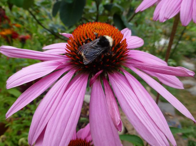 Keywords: echinacea purpurea purple cone flower blooming summer bee pollinator pollinating