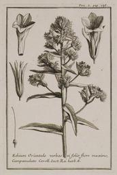 Keywords: Echium Orientale verbas ei folio flore maximo, Campanulato Coroll Inst Rei herb 6 - Tournefort Joseph Pitton De - 1717.jpg en Joseph Pitton de Tournefort Relation d ™un Voyage du Levant fait par ordre du Roy Contenant l ™histoire ancienne moderne de plusieurs Isles de l ™Archipel de Constantinople ¦ vol II Paris Imprimerie Royale 1717 p 248 1717 http //eng travelogues gr/collection php view 102 Creator Joseph Pitton de Tournefort other versions Custom license marker 2016 03 31 PD-old PD-1996 Echium orientale Relation d'un voyage du Levant 1717 |