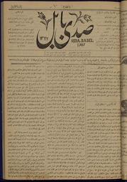 | Keywords: Echo of Babylon, Number 62, October 21, 1910 WDL12040.jpg Artwork ru Ганима Юсуф Ризк Аллаx 1885 1950 гг fr Ghanīmah Yūsuf Rizq Allāh 1885-1950 en Ghanīmah Yūsuf Rizq Allāh 1885-1950 zh 尤瑟夫·里兹克·阿拉·盖尼麦,1885-1950 年 pt Ghanīmah Yūsuf Rizq Allāh 1885 a 1950 ar غنيمة، يوسف رزق الله، 1885-1950 es Ghanīmah Yūsuf Rizq Allāh 1885-1950 ru Эхо Вавилона 62 21 октяб я 1910 года fr Écho de Babylone n° 62 21 octobre 1910 en Echo of Babylon Number 62 October 21 1910 zh 巴比伦回声报 ,第 62 ,1910 年 10 21 日 pt Eco da Babilônia Número 62 21 de outubro de 1910 ar صدى بابل، العدد الثاني والستون، 21 أكتوبر 1910 ru <em> </em><em></em><em>Seda Babel</em> Эхо Вавилона была одной из пе вых и акских газет Она издавалась в Багдаде с 1909 года и выходила еженедельно по пятницам Вплоть до окончания Пе вой ми овой войны И ак был частью Османской импе ии и на его те ито ии действовали османские законы В 1908 году на волне п оведенной младоту ками либе альной еволюции законодательство импе ии в сфе е печати было смягчено в связи с чем и акские писатели и п едставители интеллигенции получили свободу публиковать газеты жу налы и книги В езультате появилось более десятка газет одной из кото ых была <em> </em><em></em><em>Seda Babel</em> ставшая частью новой тенденции асп ост анившейся по всей импе ии есмот я на то что газетой владели и уководили два лите ато а из халдейской х истианской общины в ней публиковались мате иалы общего ха акте а не обязательно связанные с х истианской тематикой В этом смысле она была похожа на газету <em> Аль-Зау а </em> издававшуюся в Багдаде с 1869 по 1917 год Согласно выходным данным задачей газеты Seda Babel являлась публикация новостей из области политики лите ату ы и то говли для содействия п ог ессу нации Статьи и коммента ии в газете соответствовали заявленной цели ате иалы издания не носили исключительно политической нап авленности и п едназначались не столько для убеждения сколько для инфо ми ования читателей Главный едакто газеты <em>mudir</em> Юсуф Ганима был исто иком-любителем а ее издатель <em>sahib al-imtiaz</em> Дауд Слива учителем и поэтом кото ый в годы Пе вой ми овой войны был выслан из И ака за публикации на политические темы <br>Экономика; Лите ату а; Политика и уп авление fr <em>Seda Babel</em> Écho de Babylone dont la publication commença en 1909 à Bagdad fut l'un des premiers journaux d'Irak L'hebdomadaire paraissait le vendredi Jusqu'à la fin de la Première Guerre mondiale l'Irak faisait partie de l'Empire ottoman et le pays était par conséquent soumis au droit ottoman En 1908 grâce à la révolution émancipatrice des Jeunes-Turcs la régulation de la presse au sein de l'empire fut assouplie permettant aux intellectuels et aux auteurs irakiens de publier des journaux des magazines et des livres <em>Seda Babel</em><em></em> compta parmi la bonne douzaine de journaux qui résultèrent de cette libéralisation et il s'inscrivit dans une tendance qui se généralisa sur tout le territoire ottoman Bien qu'il appartînt à deux personnalités littéraires issues de la communauté chrétienne chaldéenne qui le dirigèrent également son contenu d'intérêt général ne manifestait pas spécialement d'orientation chrétienne Il s'ancra ainsi dans la même lignée qu'<em>Al-Zaura</em> journal publié à Bagdad entre 1869 et 1917 L'ours de <em>Seda Babel</em> indique que ce dernier avait pour but d'aborder « l'actualité politique littéraire et commerciale au service du développement de la nation » mission à laquelle ses articles et commentaires adhéraient Ne prônant pas d'idées politiques radicales le journal visait à informer plutôt qu'à persuader L'historien amateur Yusuf Ghanimah en était le rédacteur en chef <em>mudir</em> Son éditeur <em>sahib al-imtiaz</em> Da ud Sliwa également professeur et poète fut exilé d'Irak pendant la Première Guerre mondiale pour ses écrits politiques <br>Science économique; Littérature; Politique et gouvernement en <em>Seda Babel</em> Echo of Babylon first published in 1909 in Baghdad was among Iraq s earliest newspapers It appeared weekly on Friday Until the end of World War I Iraq was part of the Ottoman Empire and was subject to Ottoman law In 1908 in line with the liberalizing revolution of the Young Turks imperial press regulation loosened allowing Iraq s intellectuals and writers the freedom to publish newspapers magazines and books <em>Seda Babel</em> was one of more than a dozen newspapers to appear as a result and part of a trend that spread throughout the empire Although the newspaper was owned and operated by two literary personalities from the Chaldean Christian commun