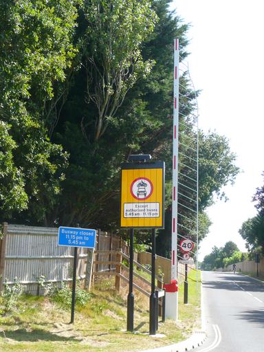 Keywords: EclipseBRT-WychLaneJcn5-P1290229.JPG en The Eclipse BRT where it crosses Wych Lane looking towards Gosport and showing the road entry restriction signage in day mode a sign which advises cyclists that the road closes at night and one of the level crossing style booms which are lowered at night whilst the busway is closed 2013-08-22 14 06 05 own Spsmiler cc-zero Eclipse Hampshire bus rapid transit Uploaded with UploadWizard