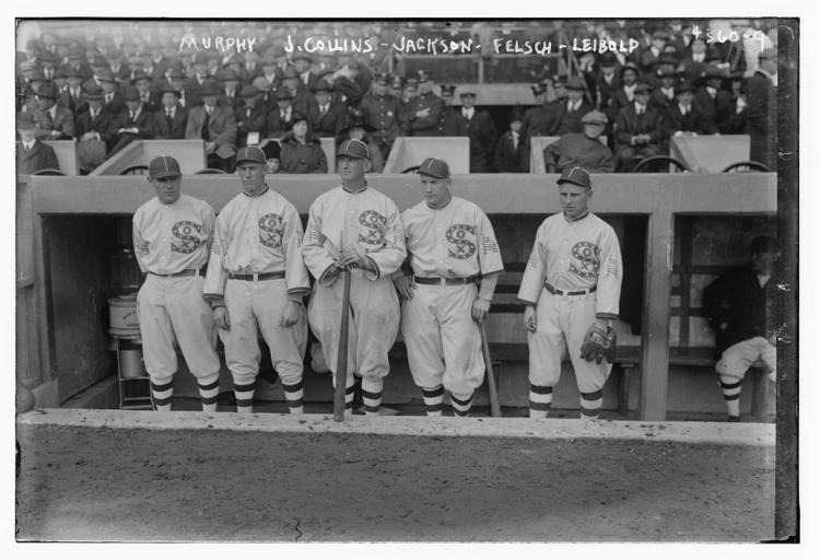 | Keywords: (Eddie Murphy, John "Shano" Collins, Joe Jackson, Happy Felsch, and Nemo Leibold, Chicago AL at 1917 World Series (baseball)) (LOC) (23147025975).jpg Bain News Service publisher Eddie Murphy John Shano Collins Joe Jackson Happy Felsch and Nemo Leibold Chicago AL at 1917 World Series baseball 1917 1 negative glass ; 5 x 7 in or smaller Notes Original data provided by the Bain News Service on the negatives or caption cards Murphy J Collins Jackson Felsch Leibold Corrected title and date based on research by the Pictorial History Committee Society for American Baseball Research 2006 Forms part of George Grantham Bain Collection Library of Congress Format Glass negatives Rights Info No known restrictions on publication Repository Library of Congress Prints and Photographs Division Washington D C 20540 USA http //hdl loc gov/loc pnp/pp print hdl loc gov/loc pnp/pp print General information about the Bain Collection is available at http //hdl loc gov/loc pnp/pp ggbain hdl loc gov/loc pnp/pp ggbain Higher resolution image is available Persistent URL http //hdl loc gov/loc pnp/ggbain 25481 hdl loc gov/loc pnp/ggbain 25481 Call Number LC-B2- 4360-9 https //www flickr com/photos/library_of_congress/23147025975/ Eddie Murphy John Shano Collins Joe Jackson Happy Felsch and Nemo Leibold Chicago AL at 1917 World Series baseball LOC LOC-image ggbain 25481 https //www flickr com/people/8623220 N02 The Library of Congress http //www loc gov/rr/print/195_copr html noknown The Library of Congress Flickr Commons PD-Bain The Library of Congress https //flickr com/photos/8623220 N02/23147025975 2016-09-08 06 53 33 pd 1917 World Series |