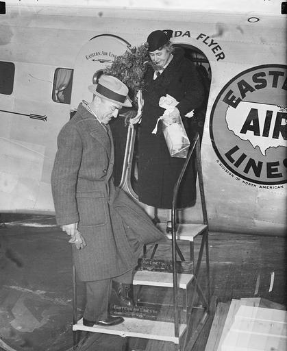 | Keywords: Eddie Rickenbacker, Mrs. W.W. Wilson.jpg en Capt Eddie Rickenbacker Mrs W W Wilson completing her first extended plane trip 1-17-35 DC-2 1935-01-17 1 negative; glass in 4 5 Institution Library of Congress Library of Congress Prints and Photographs Division Washington D C 20540 USA dcu object history credit line Title devised by Library staff Date based on date of negatives in same range Gift; Harris Ewing Inc 1955 General information about the Harris Ewing Collection is available at http //hdl loc gov/loc pnp/pp hec accession number LC-DIG-hec-38223 digital file from original negative Call Number LC-H2- B-6874 P P LOC-Image hec 38223 Rights Advisory No known restrictions on publication Eddie rickenbacker and mrs ww wilson tif yes PD-Harris-Ewing Glass plate negatives Eddie Rickenbacker Edith Bolling Galt Wilson Douglas DC-2 |