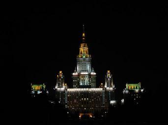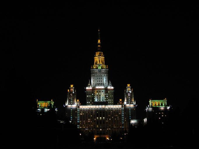 | Keywords: Edificio principal de la Universidad Estatal de Moscú "M.V. Lomonósov"..JPG es Edificio principal de la Universidad Estatal de Moscú M V Lomonósov 2011-12-19 own JohanD EstrellaGalindo cc-zero Uploaded with UploadWizard Main building of Moscow State University at night |
