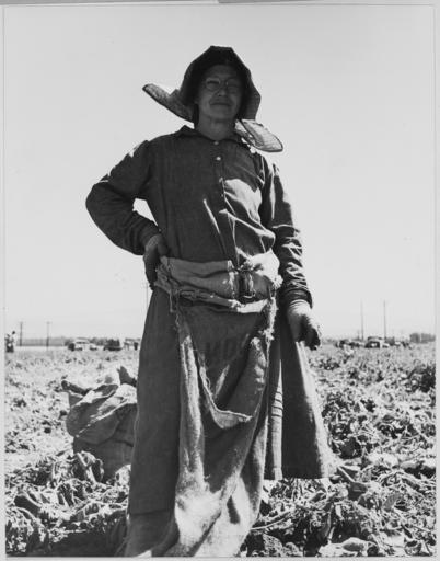 Keywords: Edison, Kern County, California. Potato picker, she is 52-years-old, has 8 children. Born in Tenness . . . - NARA - 521814.jpg Scope and content Full caption reads as follows Edison Kern County California Potato picker she is 52-years-old has 8 children Born in Tennessee she lived and was married in Oklahoma then came to California Family became migratory agricultural workers and after four years settled in Kern County She says I have a house and flowers She and her husband work in the field at 35 cents an hour 10 hours a day This class of people is known to the present migratory workers as locals General notes 521814 Local identifier 83-G-41570 Department of Agriculture Bureau of Agricultural Economics Division of Economic Information ca 1922 - ca 1953 NARA-Author Lange Dorothea 1895-1965 Photographer 1372774 <br /> Still Picture Records Section Special Media Archives Services Division NWCS-S National Archives at College Park 8601 Adelphi Road College Park MD 20740-6001 1940-04-11 Record group Record Group 83 Records of the Bureau of Agricultural Economics 1876 - 1959 Record group ARC 412 Photographic Prints Documenting Programs and Activities of the Bureau of Agricultural Economics and Predecessor Agencies compiled ca 1922 - ca 1947 documenting the period ca 1911 - ca 1947 Series ARC 521048 File unit File unit ARC Variant control numbers NAIL Control Number NWDNS-83-G-41570 Other versions <gallery> File Edison _Kern_County _California _Potato_picker _she_is_52-years-old _has_8_children _Born_in_Tenness_ _ _ _-_NARA_-_521814 tif tif File Edison _Kern_County _California _Potato_picker _she_is_52-years-old _has_8_children _Born_in_Tenness_ _ _ _-_NARA_-_521814 jpg jpg </gallery> NARA-cooperation PD-USGov Dorothea Lange 1940 in California |