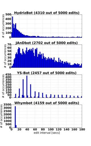 Keywords: Edit intervals of bots ja.wiktionary July 2015.svg ja ットの編集間隔の分布 2015年7 に日 語版ウィクショナリーのアクティブな ットの直近5000編集を対象に集計したもの 生成スクリプト: https //gist github com/whym/7f07459931c1df4fa702 en Distributions of the edit intervals of bots active at ja wiktionary 5 000 latest edits of each bot are examined Note the different scales of the y-axis for different bots Script available at https //gist github com/whym/7f07459931c1df4fa702 2015-07-18 own Whym other versions cc-zero Uploaded with UploadWizard Wikimedia edit statistics Wiktionary statistics Wiki bots |