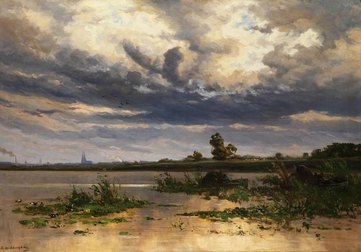 | Keywords: Edmond de schampheleer painting1.jpg en Reed bank landscape with boats and view of a town Oil on canvas 81 5 x 117 cm de Schilfufer-Landschaft mit anliegenden Kähnen und Blick auf eine Stadt Öl auf Leinwand 81 5 cm x 117 cm http //www hampelkunstauktionen de/ Hampel Kunstauktionen Creator Edmond De Schampheleer by 1899 PD-old-100 Edmond De Schampheleer Landscape paintings of Belgium Images from Hampel Auctions | ||||