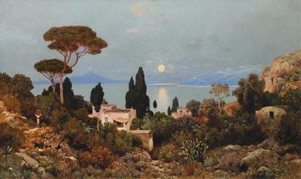Keywords: Edmund Berninger Blick von Capri auf den Vesuv.jpg Blick von Capri auf den Vesuv Öl auf Leinwand 84 x 139 5 cm http //www auktionshaus-stahl de/ Auktionshaus Stahl by 1929 Edmund Berninger 1843-1929 PD-old-70 Images from Auktionshaus Stahl Edmund Berninger Paintings of Capri |