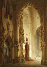 Keywords: Edmund Herger Ulmer Münster.jpg Edmund Herger 1860 Remda - 1907 München Innenansicht des Ulmer Münsters Oil on canvas 90 x 64 5 cm PD-Art Source http //www duesseldorfer-auktionshaus planetactive com/ Ulm Minster in art Paintings of church interiors Edmund Herger Images from Düsseldorfer Auktionshaus Artworks missing infobox template Sedilia in Germany |