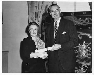 Keywords: smithsonian institution smithsonianinstitution smithsonian institution archives smithsonianinstitutionarchives women's history month womenshistorymonth women in science womeninscience 2010 20th century - early 20thcenturyearly 20th century - mid 20thcenturymid antiquities private blackandwhite monochrome black and white Creator: Smithsonian Institution Subject: Greenwood, Edna Muriel Hilburn Little 1888-1972        Carmichael, Leonard 1898-        National Museum of American History (U.S.) Type: Black-and-white photographs Date: 1956 Topic: Antiques Local number: SIA RU000095 [SIA2008-4348] Summary: Edna Greenwood (1888-1972), a life-long collector of domestic furnishings, is made an honorary Smithsonian fellow by seventh Secretary Leonard Carmichael. She and her husband donated the Arthur and Edna Greenwood Collection to the National Museum of American History. The collection comprises some 2,000 objects of Americana documenting everyday life in colonial America Cite as: RU 95 - Photograph Collection, 1850's- , Smithsonian Institution Archives Persistent URL:http://siris-archives.si.edu/ipac20/ipac.jsp?&profile=all&source=~!siarchives&uri=full=3100001~!287584~!0#focus Repository:Smithsonian Institution Archives View more collections from the Smithsonian Institution. Creator: Smithsonian Institution Subject: Greenwood, Edna Muriel Hilburn Little 1888-1972 Carmichael, Leonard 1898- National Museum of American History (U.S.) Type: Black-and-white photographs Date: 1956 Topic: Antiques Local number: SIA RU000095 [SIA2008-4348] Summary: Edna Greenwood (1888-1972), a life-long collector of domestic furnishings, is made an honorary Smithsonian fellow by seventh Secretary Leonard Carmichael. She and her husband donated the Arthur and Edna Greenwood Collection to the National Museum of American History. The collection comprises some 2,000 objects of Americana documenting everyday life in colonial America Cite as: RU 95 - Photograph Collection, 1850's- , Smithsonian Institution Archives Persistent URL:http://siris-archives.si.edu/ipac20/ipac.jsp?&profile=all&source=~!siarchives&uri=full=3100001~!287584~!0#focus Repository:Smithsonian Institution Archives View more collections from the Smithsonian Institution. |