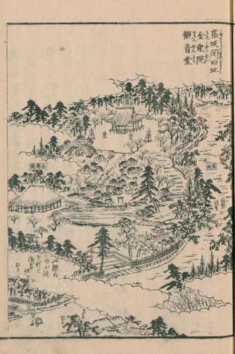 Keywords: Edo Meisho Zue 12 Shuku-zaka, Konjō-in and Kannon-dō.jpg 江戸名 図会 4巻 12 宿 関旧 金乗院 観音堂 Edo Meisho Zue vol 4 book 12 http //dl ndl go jp/info ndljp/pid/2563391/12 National Diet Library Digital Collections Frame No 12 1836 Hasegawa Settan 1778-1843 PD-old-auto 1843 Edo Meishō Zue National Diet Library Konjo-in Toshima Tokyo |