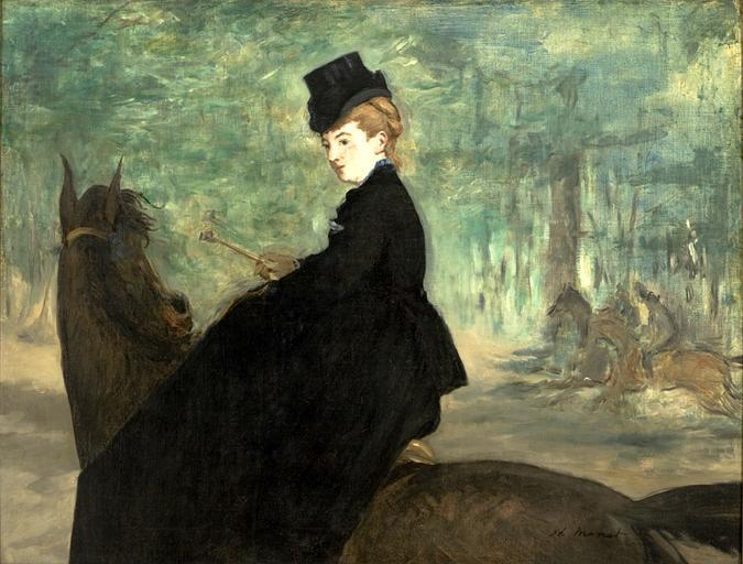 Keywords: Edouard Manet - A Amazona (Marie Lefébure).jpg Artwork Creator Édouard Manet The Horsewoman - Portrait of Marie Lefébure - 1870 1875 Oil on canvas cm 88 116 Institution Museu de Arte de São Paulo http //www masp art br/masp2010/acervo_detalheobra php id 241 Signed ed manet other versions <gallery>Manet Marie Lafebure jpg 500 × 377 pixels version</gallery> PD-old-100 DEFAULTSORT 1870; Marie Lefébure Portrait paintings by Édouard Manet French paintings in the Museu de Arte de São Paulo 1870s oil on canvas paintings Portrait 1870s portrait paintings from France 19th-century oil equestrian portraits of women 19th-century portrait paintings in Brazil Black clothing in art female Impressionist paintings in Brazil Impressionist portraits of women Riding habit in portrait paintings Riding crops in art |